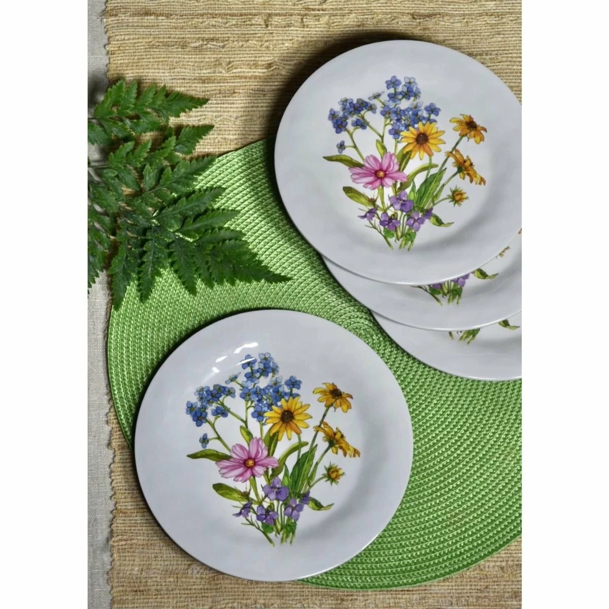 Bamboo Table Wildflowers 4-Piece Plate Gift Set Features: