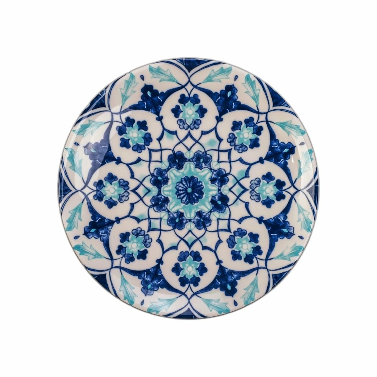 - Intricate medallion design with subtle floral accents in vibrant shades of blue &white