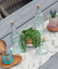 The Bormioli Rocco blue glass bottles are perfect for serving oils & vinegars, flavor infused waters, premixed cocktails and more! This Sky Blue colored bottle has a 33.75 oz capacity and stands a tall 12″. An easy to use swing top glass bottle stopper keeps contents in the bottle. These bottles are made in Italy, and they’re dishwasher safe. This bottle is also great for table decorations, home decor, and arts and crafts projects.