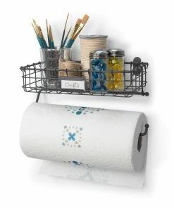 Spectrum Industrial Gray Wall Mount Basket With Paper Towel Holder