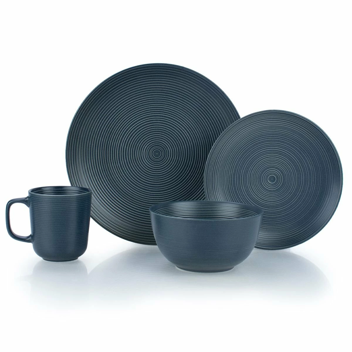 Everything Kitchens Modern Colorful Neutrals – Rippled 16-Piece Dinnerware Set (Charcoal) Features: