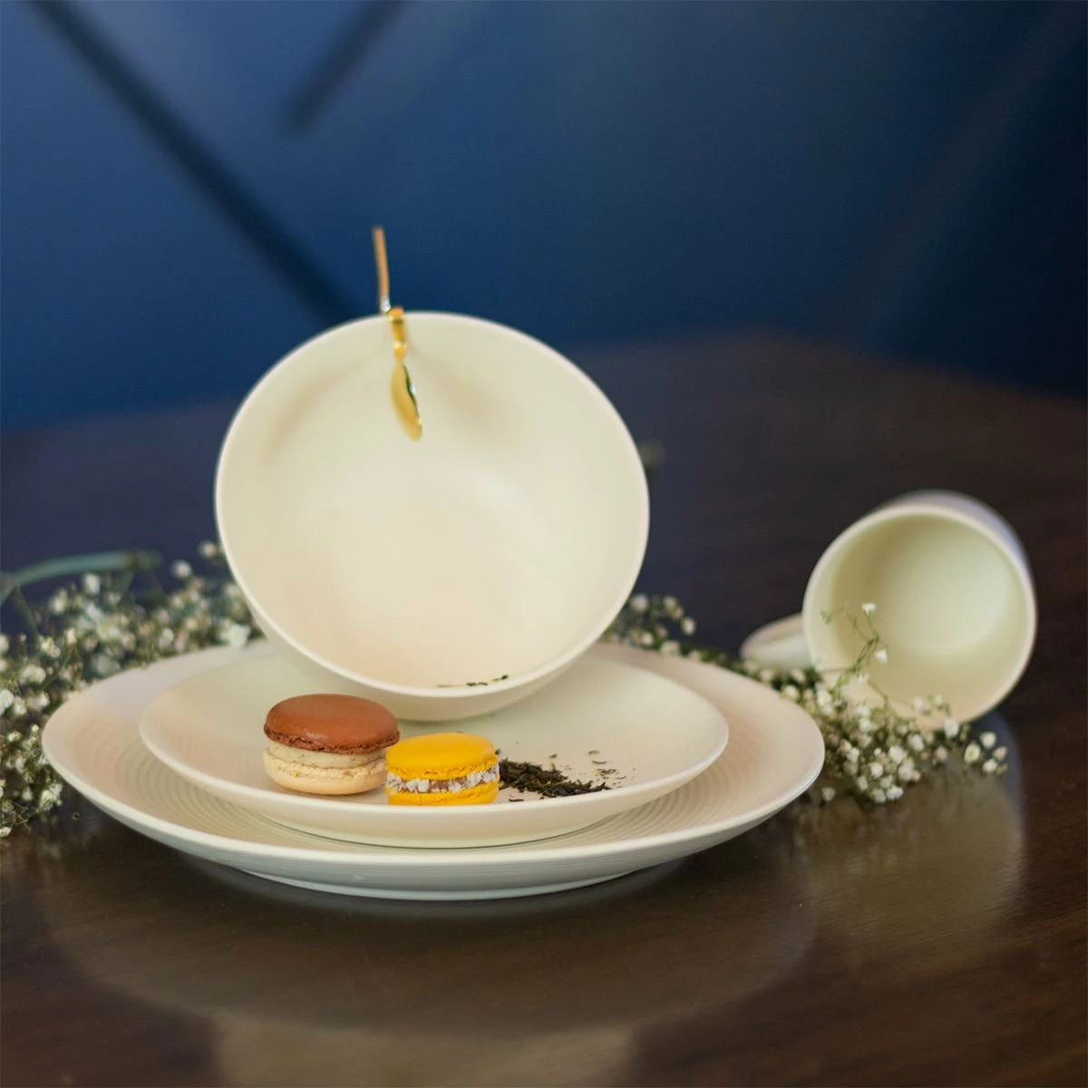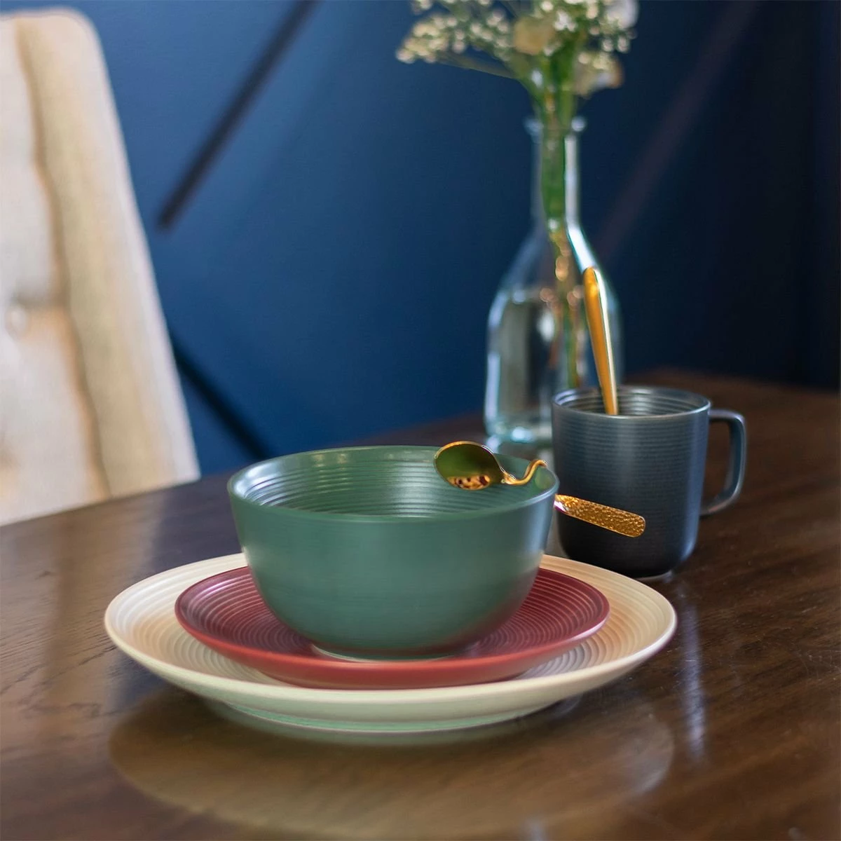 Everything Kitchens Modern Colorful Neutrals – Rippled Matte Dinnerware Features: