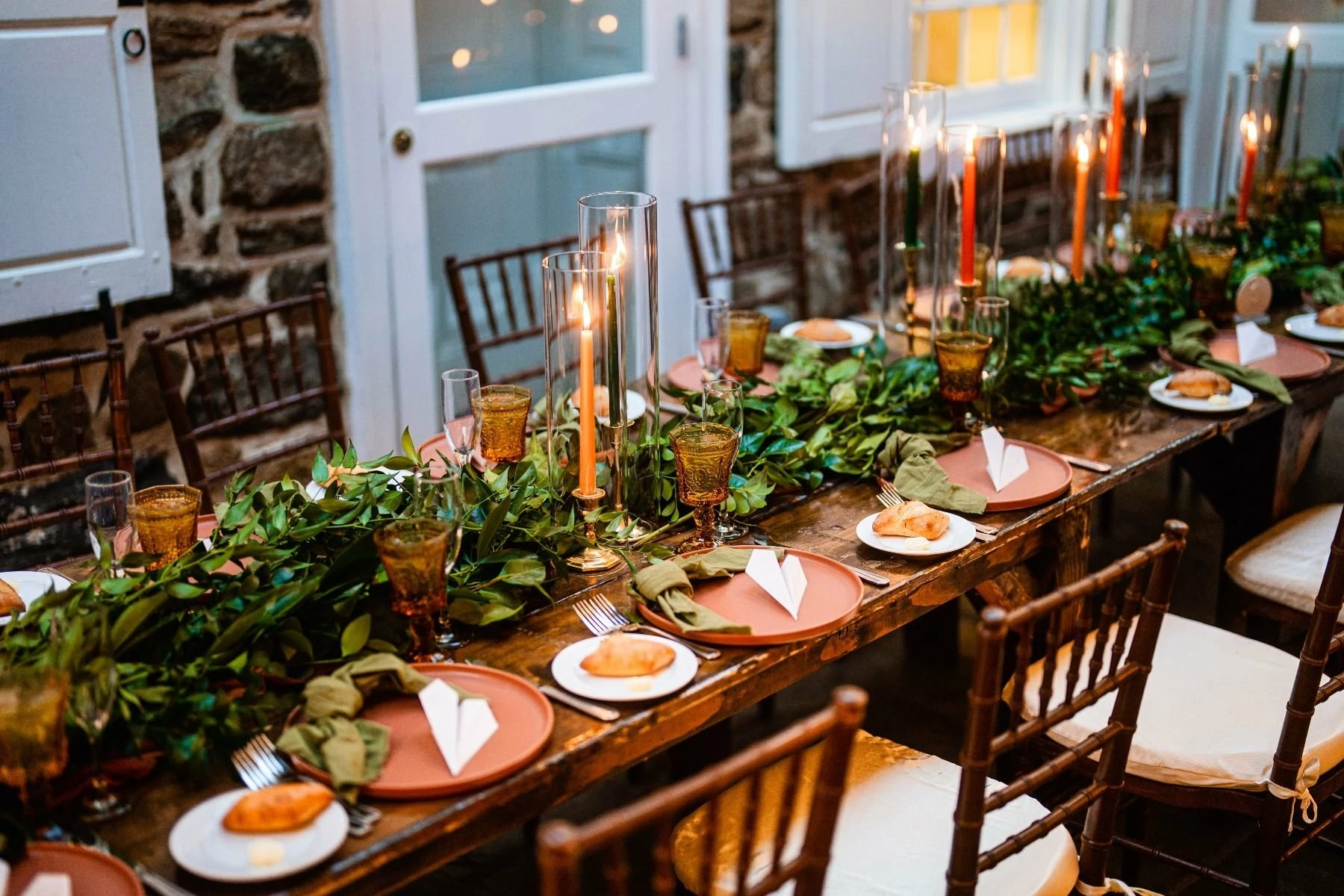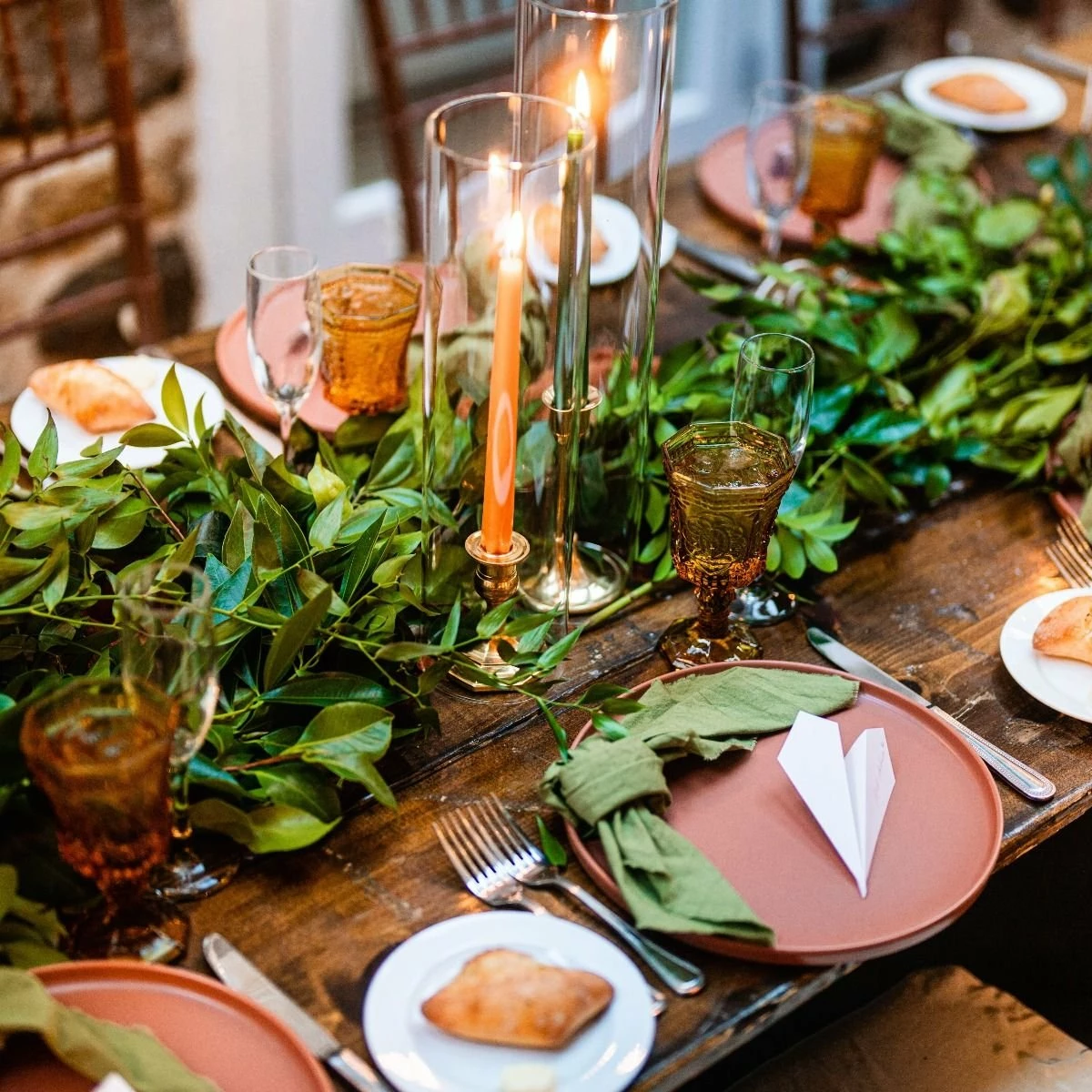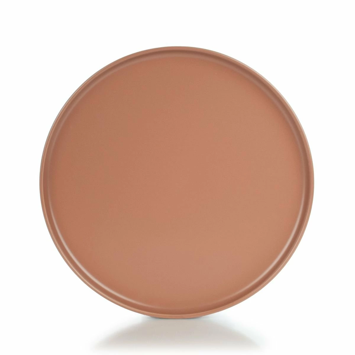 - 4 stoneware plates with a matte terracotta glaze