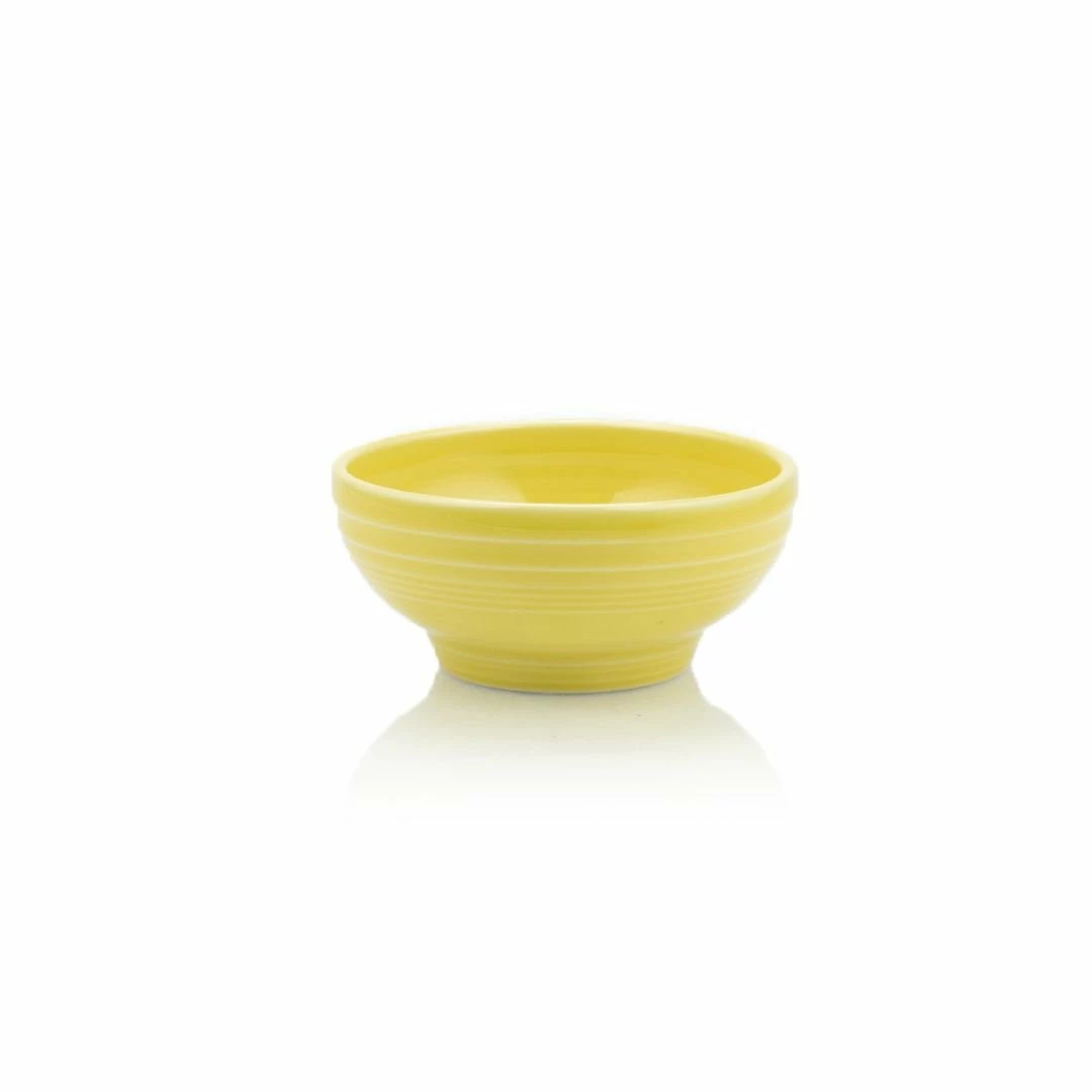 Have yourself a fresh bowl of rice with Spam & longganisa, homemade egg drop soup, or your best take on culinary fusion ramen with the Fiesta® 12oz Footed Rice Bowl in Sunflower! Made from fully vitrified, lead-free china, this footed rice bowl is resistant to cracking, chipping, and discoloration. Its footed base gives it the classic design of other rice bowls, yet it provides stability on flat surfaces. The delightful Fiesta® Sunflower is a bright yellow that will bring the charm of summer for most kitchens and table settings. While this bowl is a great way to enjoy dishes featuring rice, you may also use these bowls for other foods: cereal, oatmeal, desserts, ice cream, salad, and more! Like all Fiesta® chinaware, this rice bowl is safe to use in the dishwasher and microwave, and it is heat resistant in the oven up to 500°F. Backed by the famous five-year manufacturer’s warranty, the Fiesta® 12oz Footed Rice Bowl in Sunflower will make an excellent addition to your well-established Fiesta® dinnerware set or a great beginner piece for your future collection!