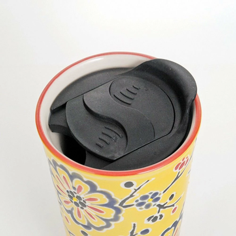 Take your coffee, tea, and other hot beverages to-go in the Fuji Merchandise 12oz Double-Walled Ceramic Tumbler in Yellow Flower! Double ceramic walls provide insulation to keep liquids warm or cool. The bright and cheery yellow flower design adds an eye-catching flair. Pops of red in the details and around the rim bring the design together in a way that is reminiscent of traditional brush painting. The included travel lid slides open and closed with ease. The ceramic tumbler is dishwasher and microwave-safe, making it easy to warm up and clean. Whether you’re headed to work or running errands, avoid spills and keep your beverage warm in the Fuji Merchandise 12oz Double-Walled Ceramic Tumbler in Yellow Flower!