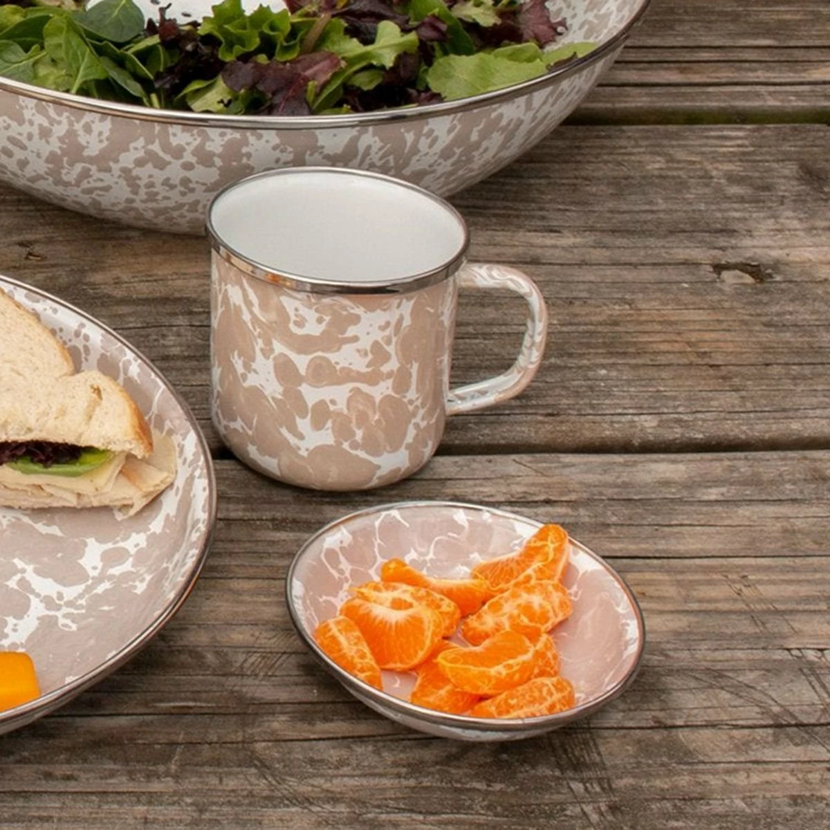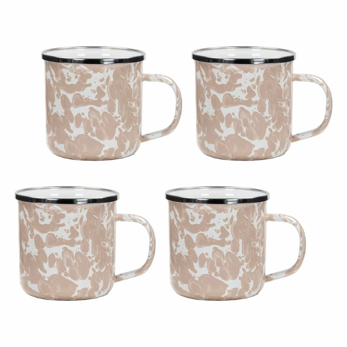 Golden Rabbit Enamelware 12oz Mugs – Set of 4 (Taupe Swirl) Features: