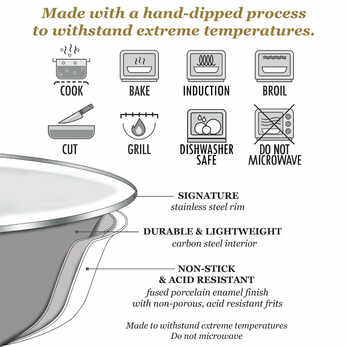 - Oven & stove top-safe | Dishwasher-safe | Non-toxic
