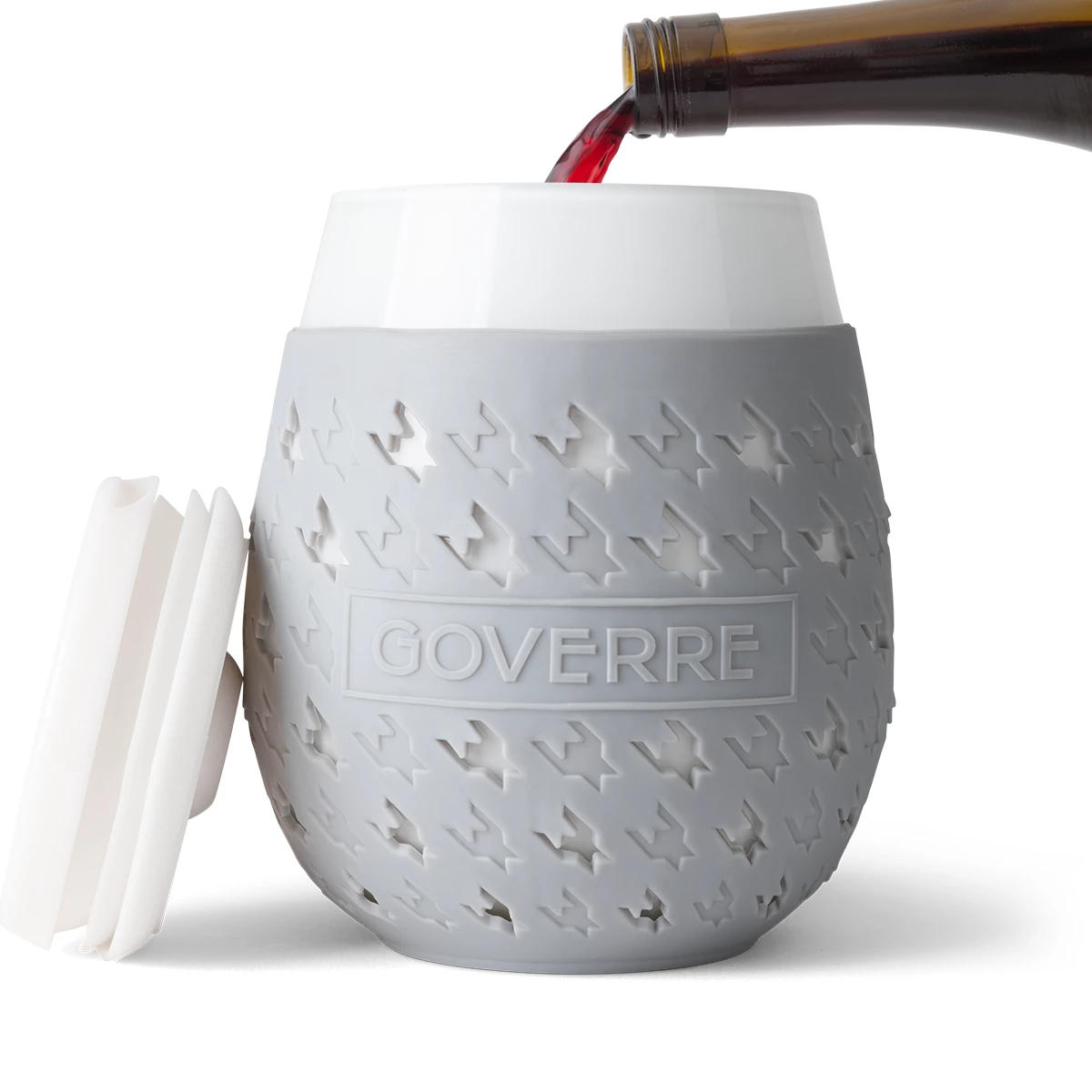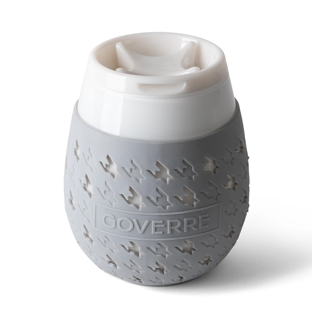 Enjoying your favorite wine on-the-go at a tailgating party, on a camping trip or at the beach usually means settling for a cheap disposable cup that affects the taste and quality of the wine. Now, with Goverre’s shatter-resistant to-go Wine Glass in Grey, there’s no more need to compromise! Made of extra thick, white-coated glass, Goverre has a Houndstooth-patterned silicone sleeve that provides a secure grip, prevents heat transfer and adds a stylish pop of color. It can be used with or without the spill-resistant lid, and it’s dishwasher-safe for easy cleanup. With this modern, chic glass, you can enjoy your favorite wine and be the life of the party without worrying about spills, breaks or subpar taste. Order your Goverre Wine Glass in Grey today!