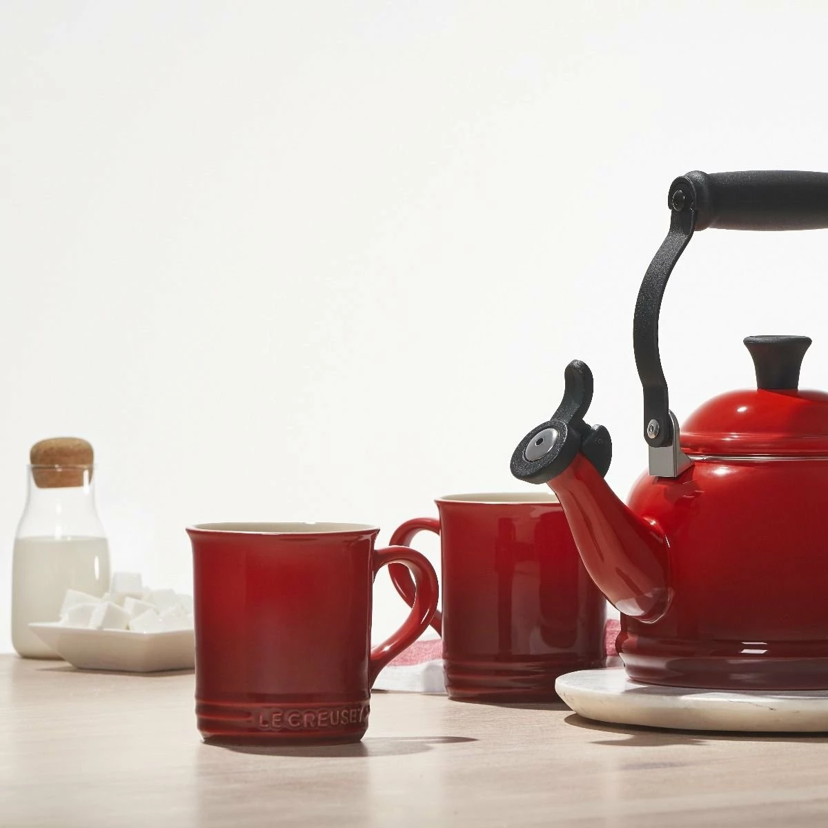 This mug’s beautiful enamel exterior is stain and scratch-resistant so you can enjoy the beautiful shine of your new mug for years. This quality mug is dishwasher safe and has a curved loop handle for a comfortable hold. Whether you’re pouring a hot cup of joe or making a nice herbal tea, Le Creuset’s 14oz Cherry Red Stoneware Mug was designed with your perfect day in mind.