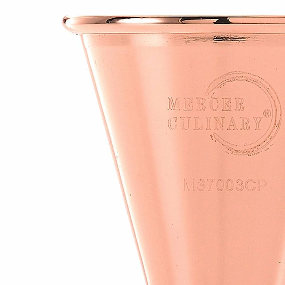 Make the perfect cocktail with this Barfly Copper Plated Jigger! This stainless steel double jigger measures 1.5oz on one side and 3/4oz on the other—perfect for creating a sidecar cocktail consisting of 2oz Cognac, 3/4oz Cointreau, and 3/4oz fresh-squeezed lemon juice. Inside there are internal measurement lines for even more options. Made of 18/8 stainless steel and featuring a rolled top edge for strength, this Japanese style jigger will serve your guests a fantastic cocktail every time. And thanks to its industrial-style feel and shiny copper finish, you’ll love displaying it!