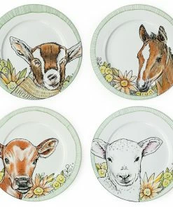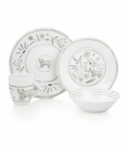 Everything Kitchens Barnyard Baby Animals 28-Piece Dinnerware Set | “Leaping Sheep” – Lamb
