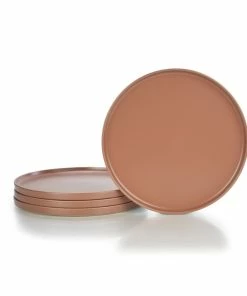 Everything Kitchens Modern Flat 16-Piece Dinnerware Set | Terracotta, Beige, Dusty Blue, Soft Pink