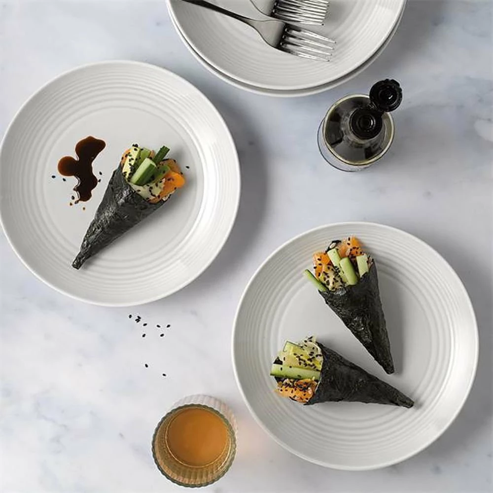 The Gordon Ramsay Maze Collection 8.8” Salad Plate is just the right size for your morning fruit and favorite pastry, a lunchtime sandwich and sides, or a fresh dinner salad appetizer. Inspired by the cool tones and contemporary ambiance of Gordon Ramsay’s London restaurants, the Maze Dinnerware Collection in Light Grey combines generous proportions, a subtle embossed circle pattern, and a modern flair in dinnerware that is practical enough for weeknight meals yet stylish enough for all your casual entertaining needs.