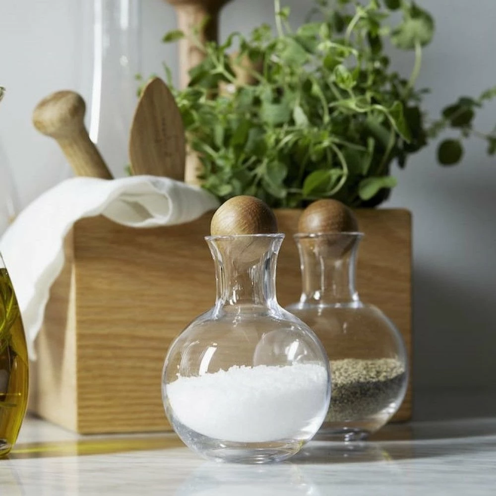For a stylish solution to storing salt, pepper, and other favorite herbs and spices, try the Sagaform Nature Serving Set! From the Nature Collection featuring beautifully designed products made of natural materials and inspired by Scandinavian minimalistic style, this set includes two spice bottles with an eye-catching round shape that are perfect for storing sea salt, pepper, and other herbs and spices. Perfect for use while preparing meals or for keeping at the table so guests can season their meal, these lovely spice bottles include a solid round oak stopper to keep the bottle sealed when not in use. Whether you’re gifting to a friend or treating yourself, the Sagaform Nature Serving Set will add a touch of style to your kitchen collection!