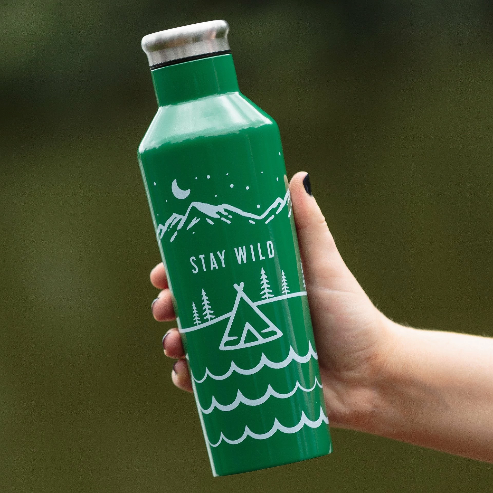 Stay hydrated while enjoying the great outdoors with the Typhoon PURE Stay Wild Bottle! From the PURE Collection featuring stylish products for active, environmentally conscious lifestyles, this stainless steel bottle has a 16.9 oz. capacity and is designed with double-wall insulation thatβll keep your drink hot for 12 hours and cold for up to 24 hours. With a stainless steel leak-proof lid, this reusable bottle is an eco-friendly and stylish solution to reducing plastic waste. Featuring an eye-catching mountain and landscape design, the PURE Stay Wild bottle is perfect for taking to the gym, on a hike, or on the go!