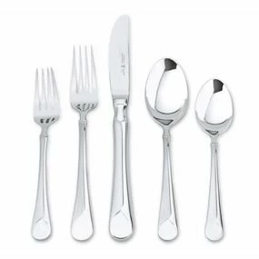 - 5-piece service set includes sugar spoon, butter knife, meat fork, serving spoon, and slotted serving spoon